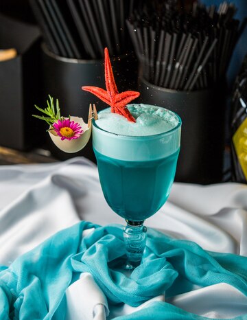 A vibrant blue drink with a refreshing blend of lemonade and blue curaçao.