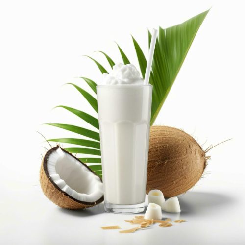 A creamy and tropical blend of coconut milk, tender coconut, and ice for a refreshing shake.